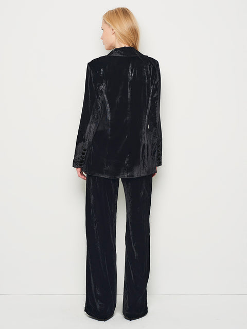 The Fiona Velvet Blazer features sleek soft tailoring and a classic silhouette reimagined in lush velvet. This beauty features shoulder pads, notched lapels, three-button front closure, front flap pockets. The Fiona Velvet Blazer is also fully lined with stretch satin for comfort and mobility, and it also has a signature secret inner pocket to conceal your small essentials. Pair with our matching sets Fiona Velvet Trousers for a full look and now you are ready to take on day! This style soft + relaxed. If you are between sizes we suggest sizing down for a more fitted look or sizing up for a more relaxed look.