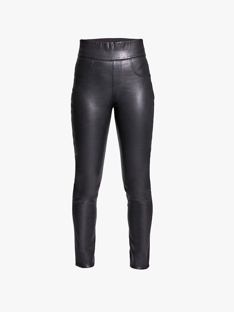 Cette paire en cuir stretch est encadrée d'une taille élastiquée et d'un panneau de contrôle du ventre intégré sans couture pour assurer un ajustement optimal et plus plat. Gigi présente une coupe skinny taille haute et une ceinture de 2 ¾ ”qui maximise le confort. Se marie sans effort avec des talons et des baskets.