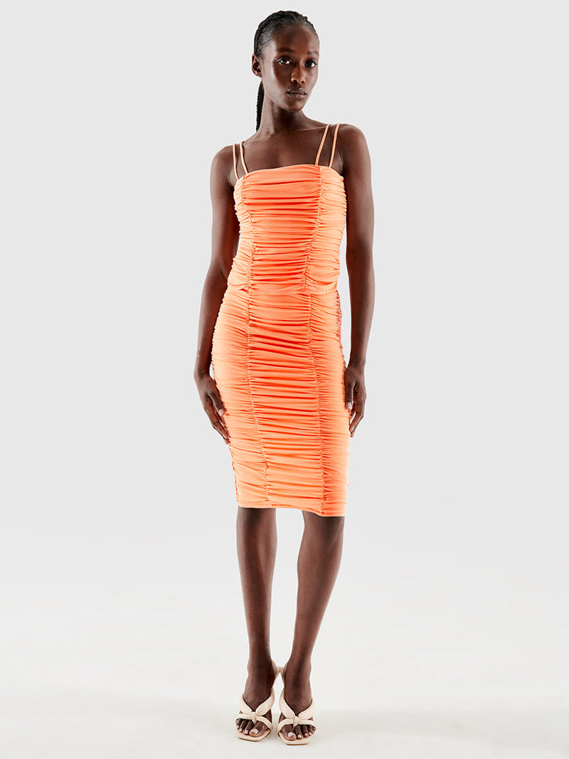 Our Leona top is perfect for your next event or night out. Full-body ruching flatters every body type, and our double straps create extra intrigue. Made from our liquid jersey crepe, you can dress this piece down with some dark jeans or pair it with our Leona skirt for a full look.